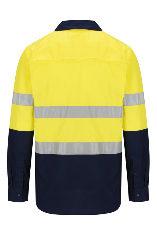 Mens Hi-Vis Light Weight Closed Front Ripstop Cotton Shirt - Yellow/Navy
