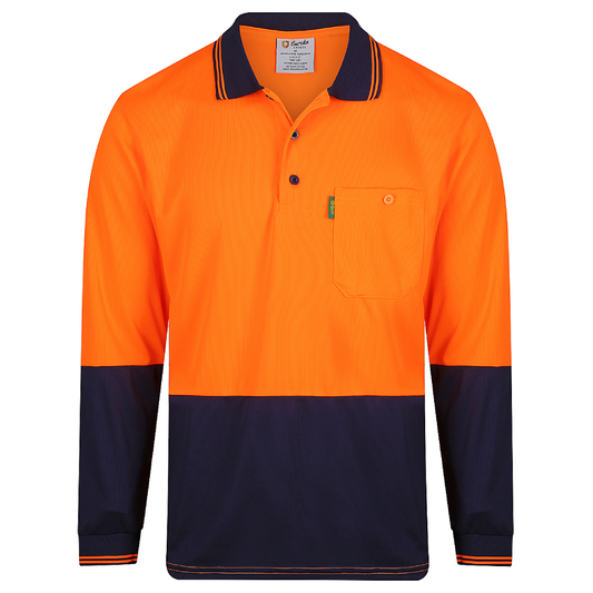 Unisex Hi-Vis Long Sleeve Polo - Orange/Navy