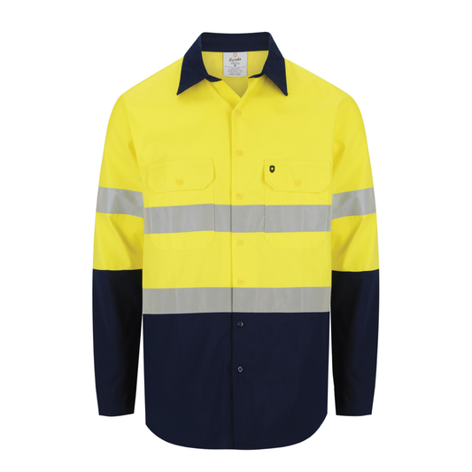 Ladies Hi-Vis Ripstop Cotton Taped shirt - Yellow/Navy